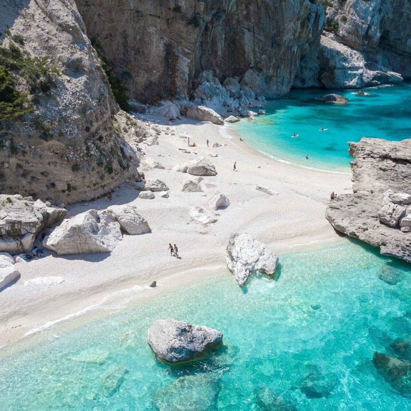 Cala Mariolu è situata lungo la Costa di Baunei, in Sardegna, e appartiene al territorio comunale di Baunei, celebre per i suoi paesaggi spettacolari e la natura incontaminata. Un paradiso di sabbia, sassolini bianchissimi e acque cristalline, Cala Mariolu è stata premiata nel 2024 come la spiaggia più bella d’Europa e la seconda al mondo dal prestigioso The World’s 50 Best Beaches.