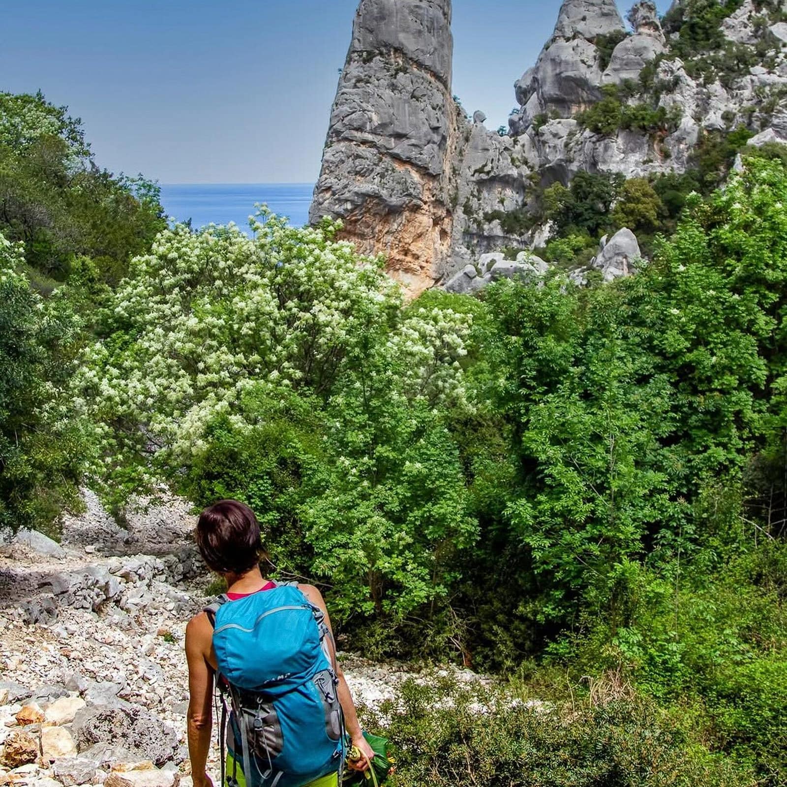 The hike to Cala Goloritzé starts from the Golgo Plateau in Baunei and winds through Mediterranean scrub for about an hour and a half. Along the way, you will enjoy panoramic views that open over the mountains and the turquoise sea below.