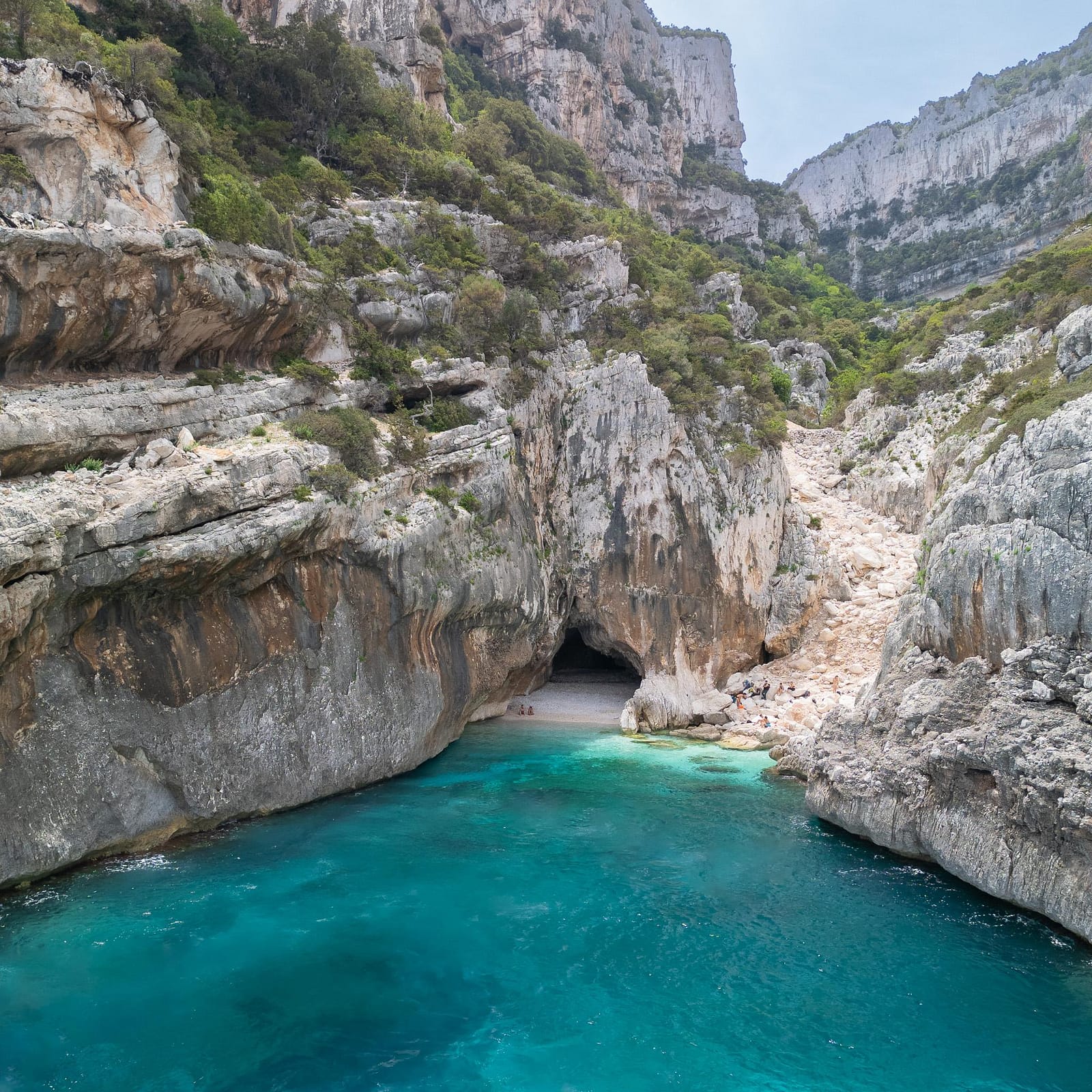 Located just a few minutes by boat from Cala Mariolu, Cala Mudaloru is among the least known and most exclusive coves along the coast. Here, nature reigns supreme, with towering rock walls embracing the beach and a spectacular cave that extends about 20 metres into the cliff.